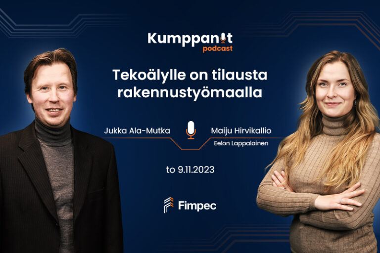Kaupallinen yhteistyö 9. marraskuuta 2023 Kumppanit-podcast: Tekoälylle on tilausta rakennustyömaalla – vieraana Jukka Ala-Mutka Fimpec